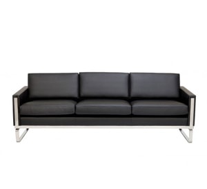 This retro style sofa has square edges with stainless steel feet and trim, and embodies Wegners ideology.